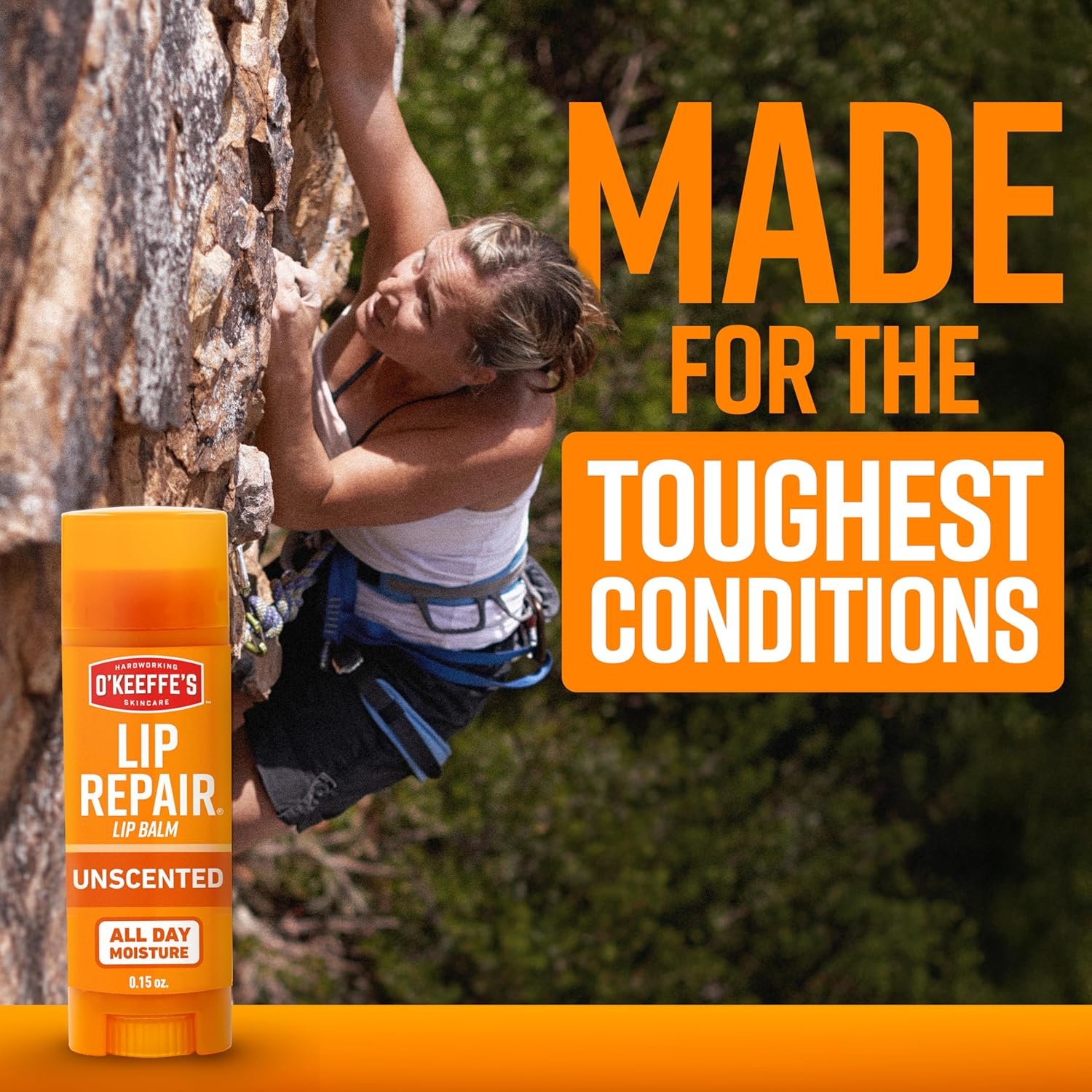 O’Keeffe’s Lip Repair Lip Balm provides the same incredible results customers have come to expect from O’Keeffe’s moisturizers – now in a lip balm! O’Keeffe’s Lip Repair is hardworking skincare that provides instant relief to extremely dry, cracked lips. O’Keeffe’s Lip Repair is a highly effective lip balm that heals, relieves and repairs extremely dry, cracked lips. When used daily, O’Keeffe’s Lip Repair is clinically proven to provide instant relief and all day moisture in one use, create a flexible barrier and heal dry, cracked lips, protect against dryness all day, even while you eat and drink , and absorb quickly to provide soft, smooth lips. O’Keeffe’s Lip Repair comes in two variants – Original and Cooling Relief. Original is for those who prefer unflavored and unscented. Cooling Relief is for those who enjoy the sensation of peppermint flavor. Both flavors are available in the convenience of a stick or tube form! WHY IT WORKS: O’Keeffe’s Lip Repair Lip Balm creates a multi-layer flexible barrier that moves with your lips to help keep dry, cracked lips protected. The lip balm keeps lips moisturized for 8 hours. FOR BEST RESULTS: Apply to lips as needed. Stop use if irritation occurs. Protect this product from excessive heat and direct sun. Click on the O’Keeffe’s link at the top of this page to see more products from O’Keeffe’s.