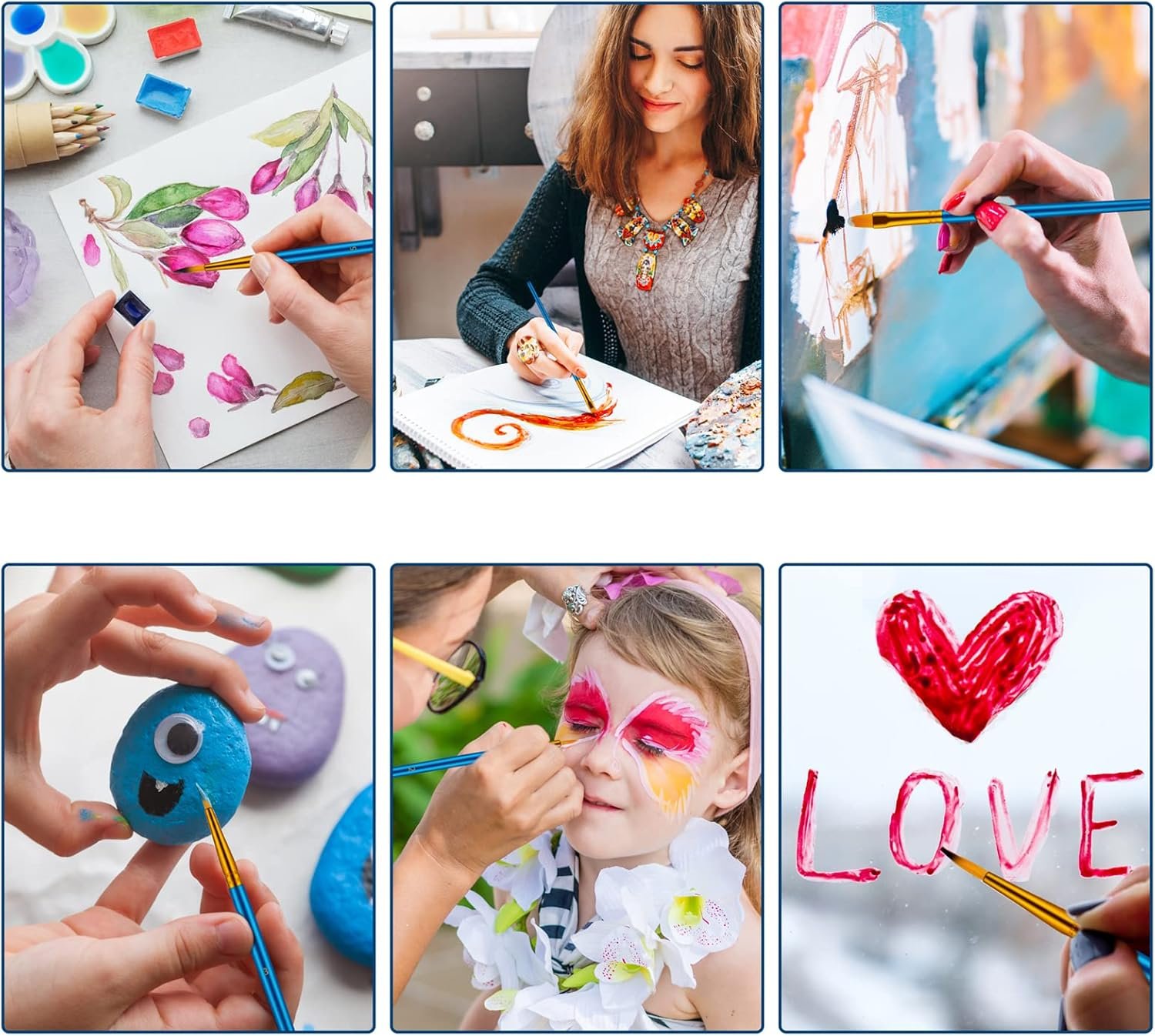 Multi-purpose Painting Brushes: Assorted Sizes & Shapes of Paint Bush Bulk Perfect for Art Painting, Which Can Cover all Your Needs. Works Well with Art, Watercolor, Oil, Canvas, Gouache, Rocks, Vinyl, Acrylic Painting, Body, Nail, Face Painting, Fabric, Egg, Miniature, Model, Wood, Glass, Cup, Ceramic, Fine Work, Art Class, Craft Art Painting, DIY Art Crafts etc. Acrylic Paint Brushes Allow You to do Fine Detail Painting Precisely to Reach Tight, Small Spots or Tiny Points.
