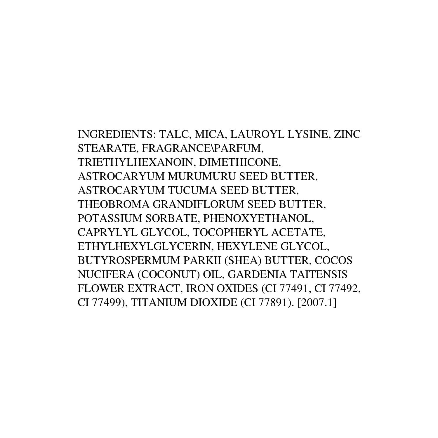 What it is: An ultra-luxurious, water-resistant matte bronzer infused with Monoi and Murumuru Butter to deliver a long-lasting, matte, Tahitian sun-kissed look! Incredibly creamy and soft texture combines the best features of a powder and cream bronzer to deliver an airbrushed matte finish unlike any other. Why it’s good for you: Infused with a powerful blend of exotic Tahitian Monoi Butter, Murumuru Butter, Cupuaçu Butter, and Tucuma Butter. Packed with essential fatty acids and pro-vitamins that soften, condition, and moisturize skin, leaving it silky soft.