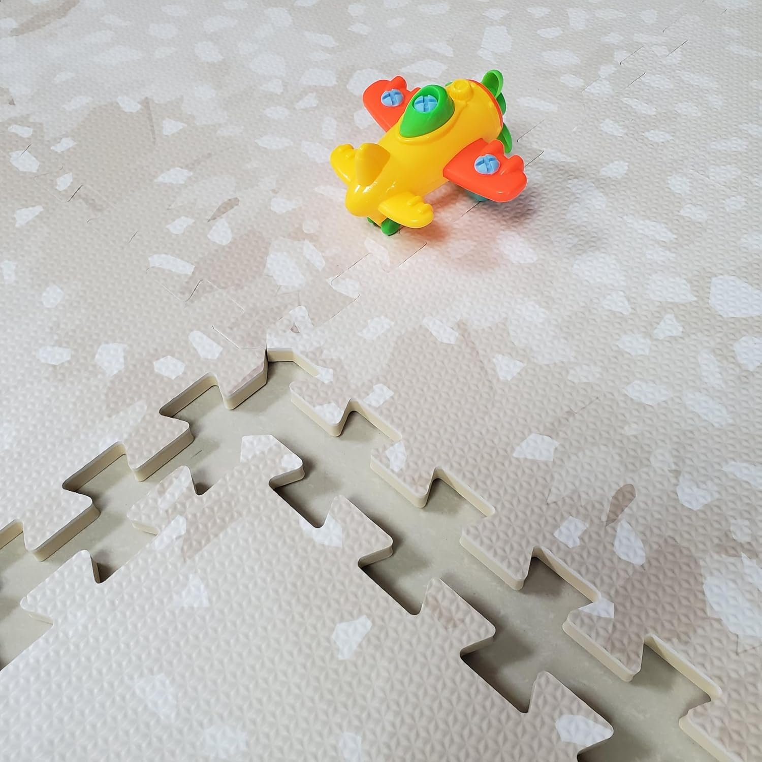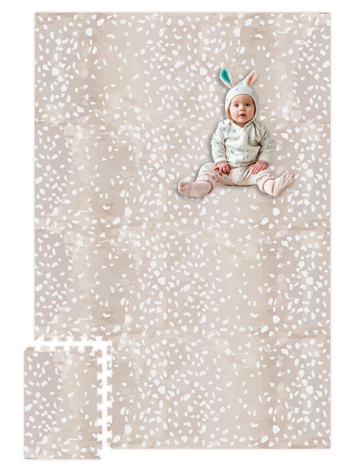 🧩 Camouflaged Terrazzo Design: A soft, modern terrazzo pattern with neutral tones, thoughtfully designed to blend seamlessly into any home décor while providing a stylish play area for your little one.
