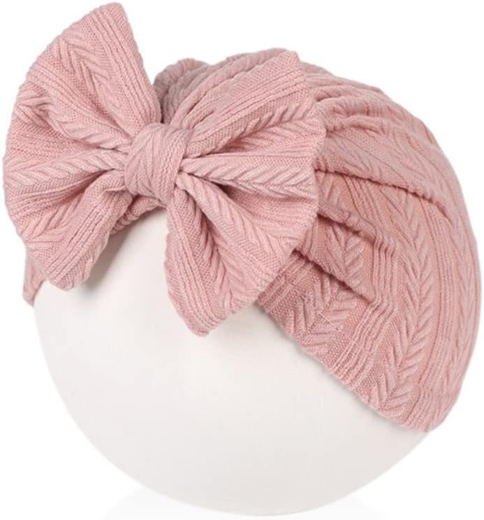 QandSweet 0-24 Months Newborn Girls’ Hats Cotton and Linen Cap Infant Big Bow Hat Baby Shower