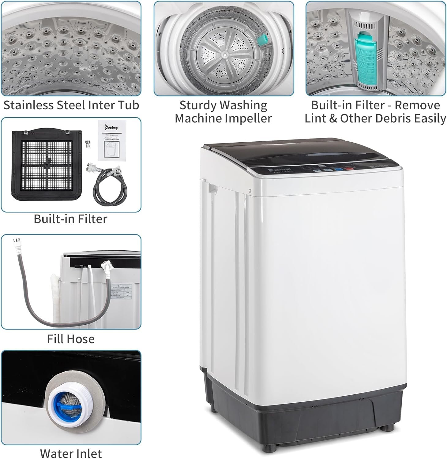 2. Features a large 17.6LBS load capacity for doing light to medium laundry loads