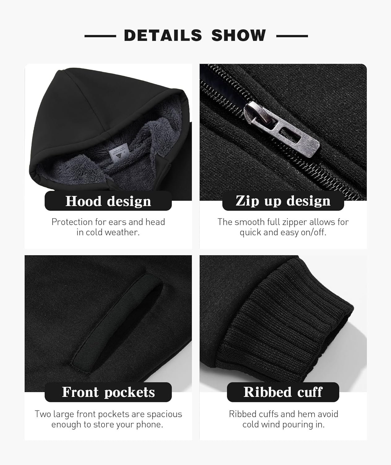Jacket for Boys Hoodie Fleece Jacket Warm Sherpa Lined Zip Up