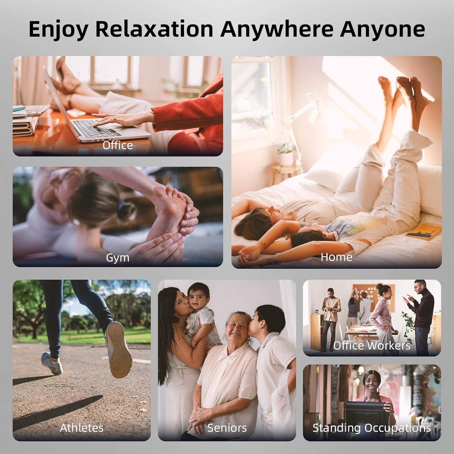 Pain Relief and Improved Blood Circulation: Our unique acupressure nodes and massage technology help alleviate plantar fasciitis, neuropathy, muscle tension, and other pains. Designed to improve blood circulation, using the foot massager before bed can enhance sleep quality