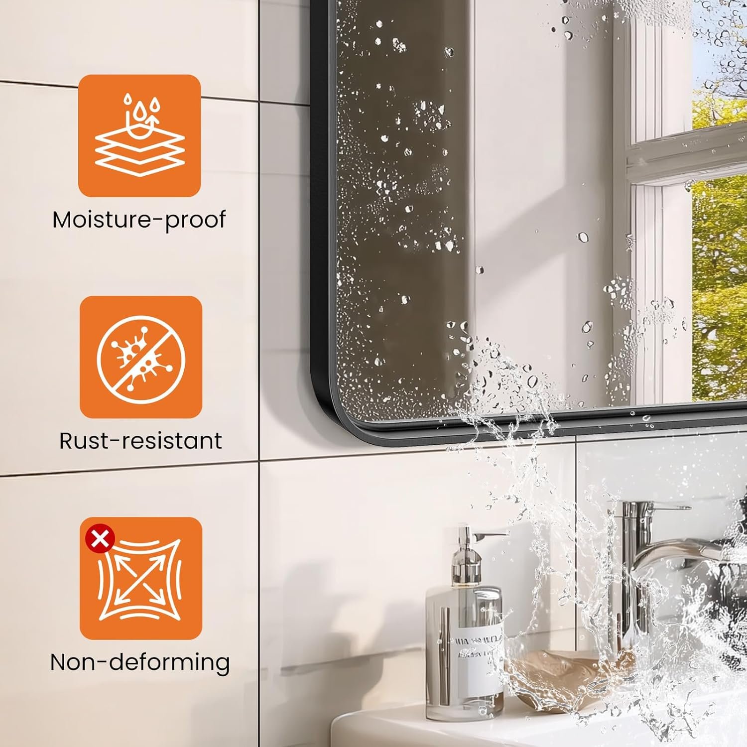 【Shatterproof Tempered Glass】Unlike other fragile mirrors, all black framed mirrors are made of 4 mm tempered glass, which is 5 times stronger than ordinary mirrors. Will not splinter into pieces even when shattered by super force. Safe and easy to clean.