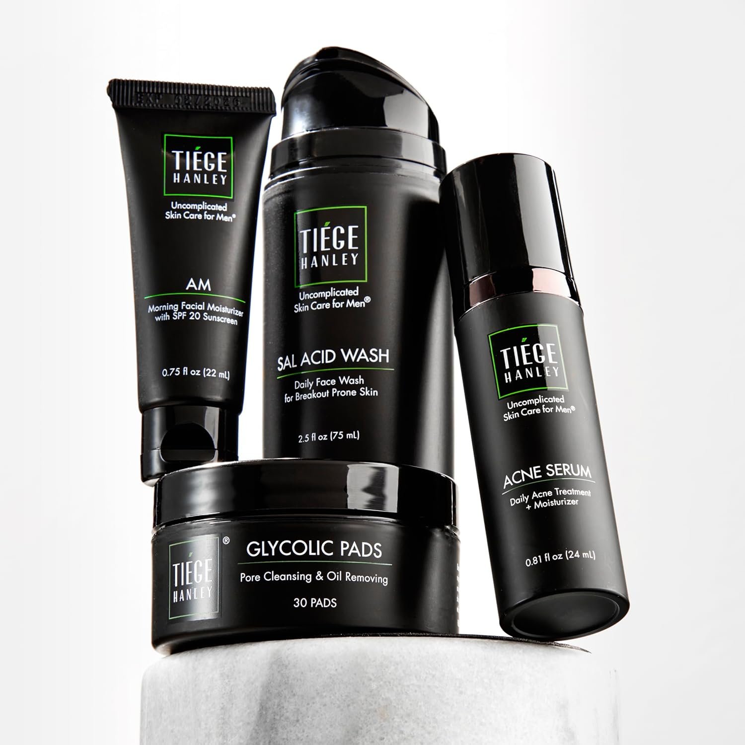 Put Your Best Face Forward: The TiegeClear Acne Advanced Routine is a comprehensive skin care regimen designed to combat acne. The system includes SAL ACID WASH (2.5 oz), GLYCOLIC PADS (30 count), ACNE SERUM (0.85 oz), and AM Moisturizer (0.75 oz). The products in this routine are designed to work together using TiegeClear technology to prevent breakouts and acne, and moisturize your skin. This set provides a 30-day supply that’s great as a starter pack for you or a gift for someone else.