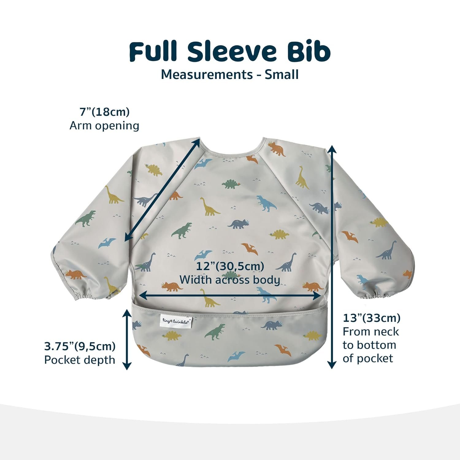 Tiny Twinkle Long Sleeve Bib for Babies & Toddlers – Waterproof Smock Bib for Eating – Machine Washable & Mess-Proof, Baby Feeding Essential & Shower Must-Have(Dinosaur, 6–24M)