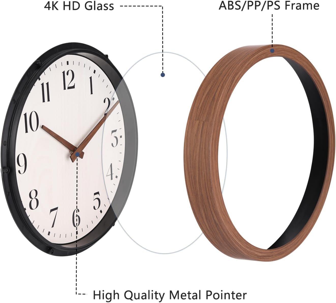 Silent Sweep Movement: This 12-inch wall clock features a continuous sweep hand powered by precision quartz movement, ensuring accurate timekeeping for seamless daily scheduling and punctuality.