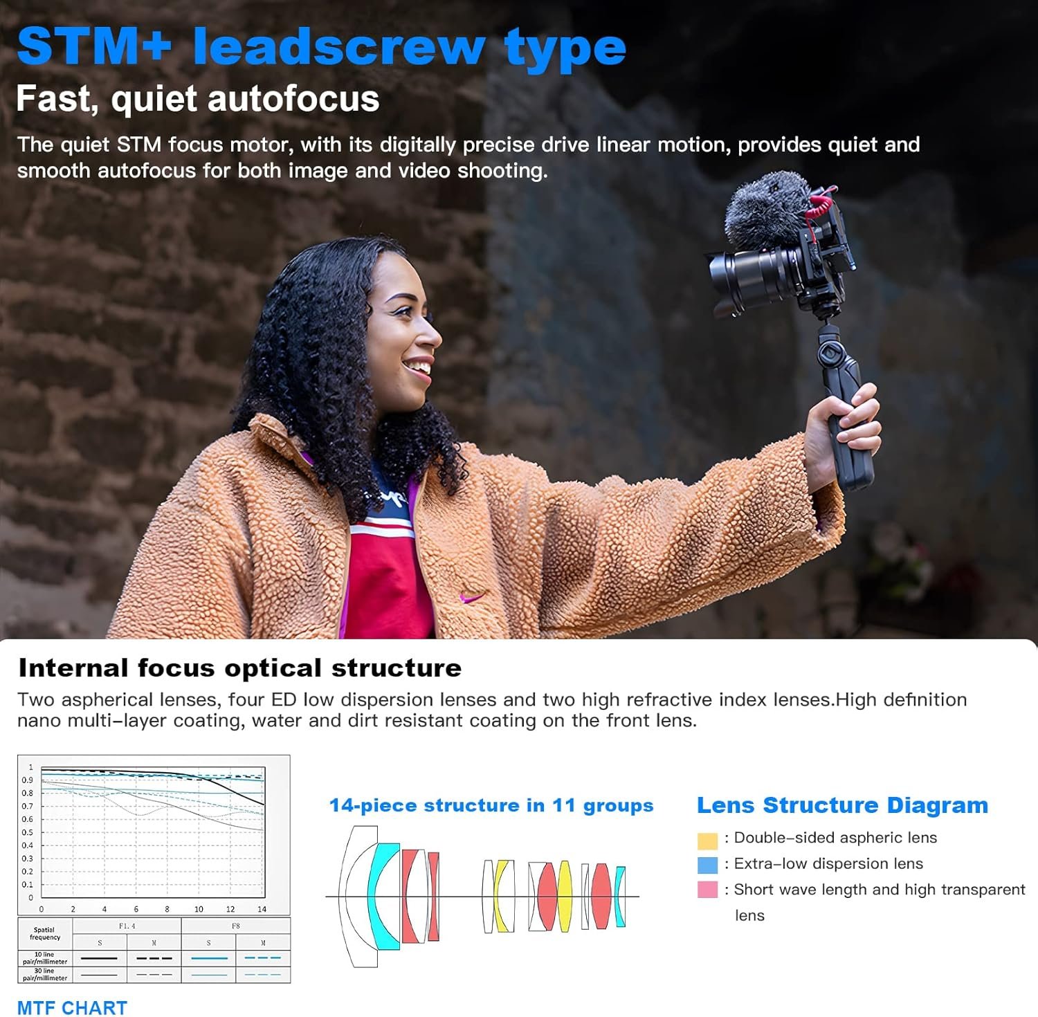 【Step-less STM Motor】It features STM focusing motor, step-less aperture dialing , and supporting eye/face detection autofocus. The compact and lightweight body makes it a best choice for Vlog creation.