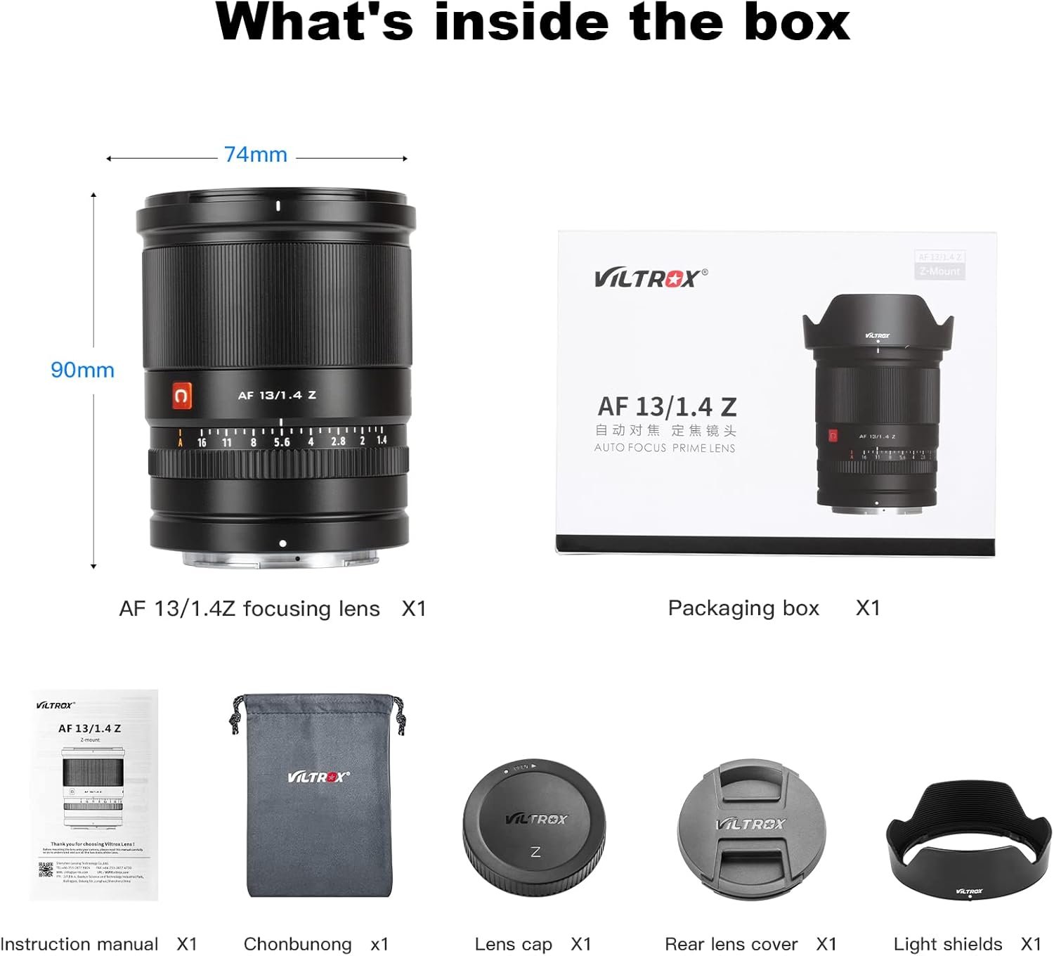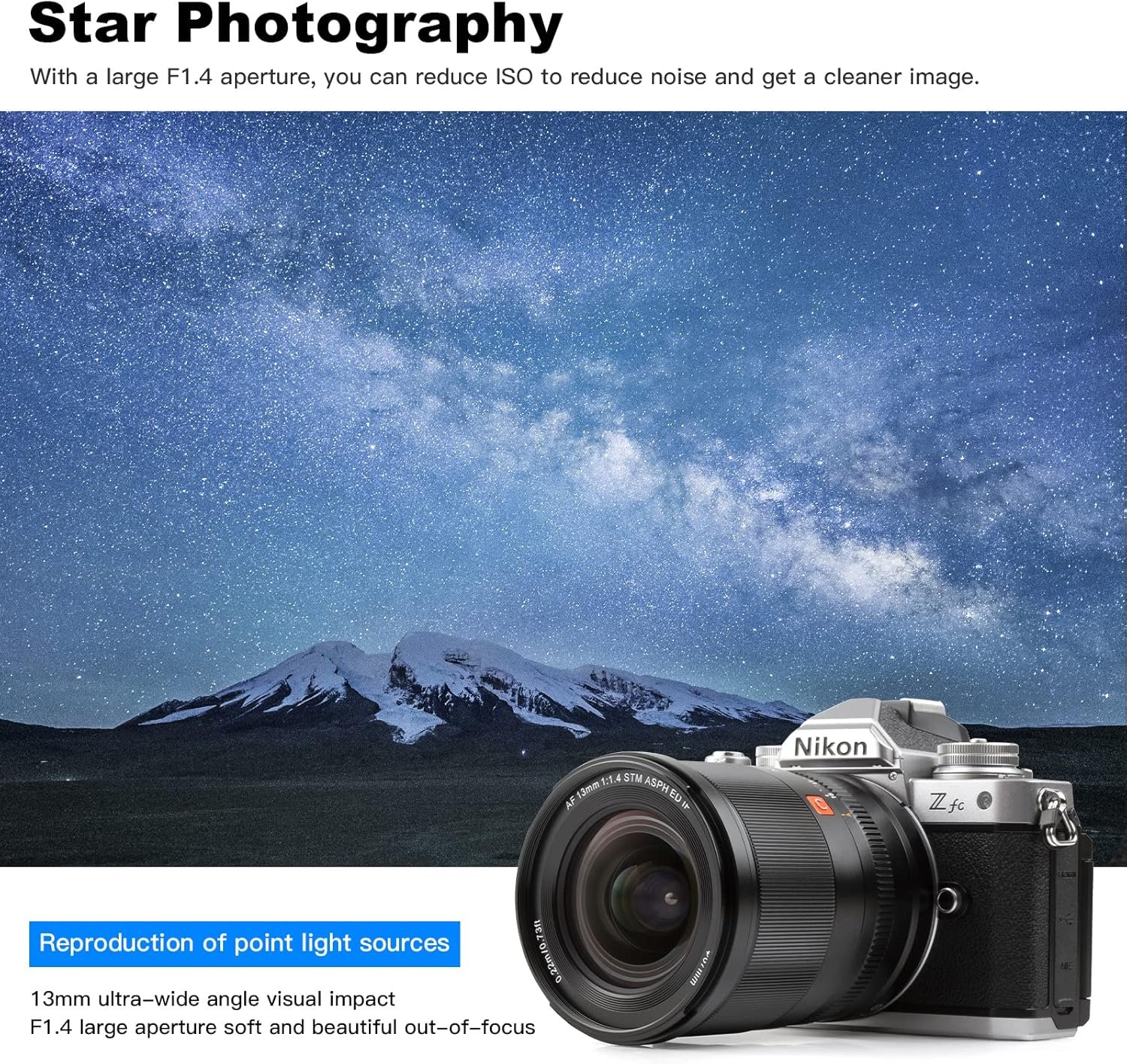 【13mm Wide Angle】Ultra wide-angle lens is designed for Nikon Z-mount mirrorless cameras. With both 13mm wide-angle and F1.4 large aperture, this lens is ideal for street photography, portrait photography, close-up shooting and Vlog video production.