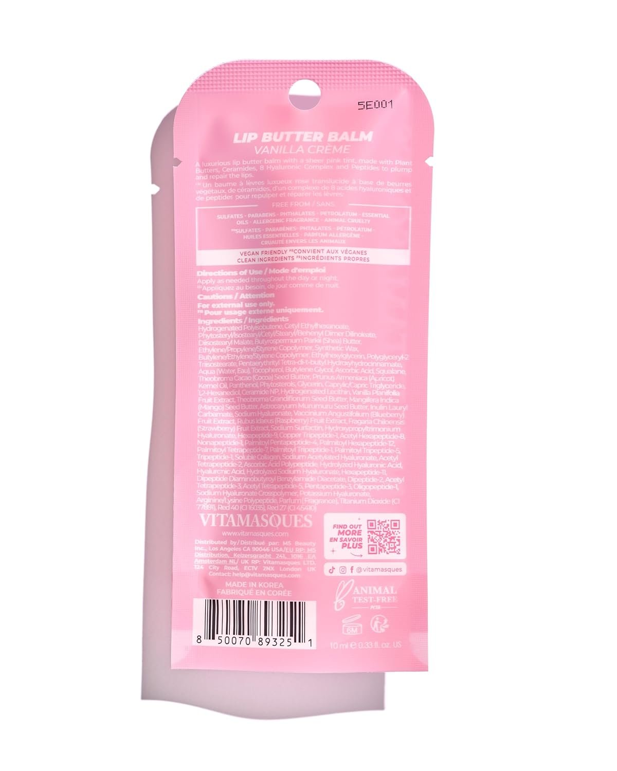 Hydrating & Repairing Lip Balm: Vitamasques lip butter balm is enriched with shea butter, ceramides, and 8 types of hyaluronic acid to deeply moisturize and soothe dry, cracked lips for lasting lip hydration