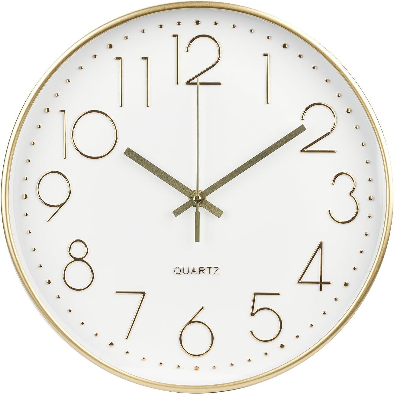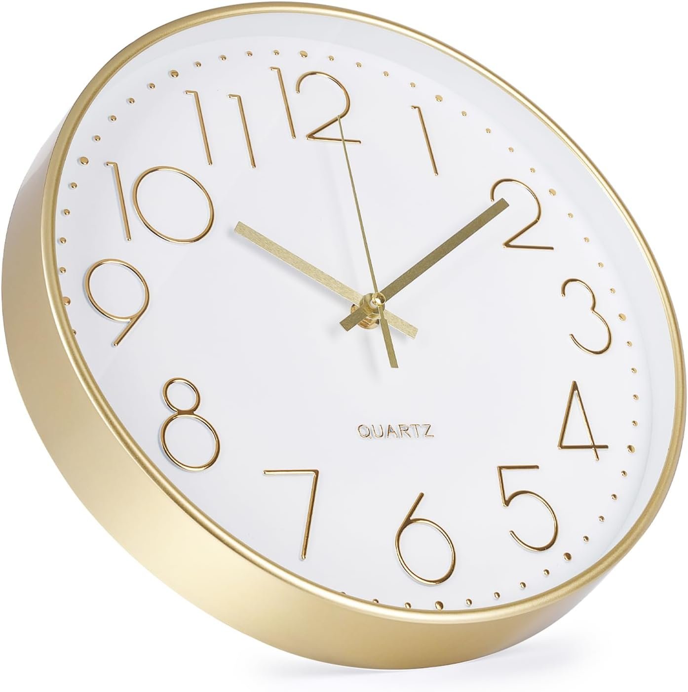 Customers like the clock’s appearance, particularly its gold rim, and appreciate its quiet operation and good value for money. The clock is easy to see and read from a distance, with large numbers that work well in various rooms, and one customer notes it looks more expensive from a distance. While some customers report the clock keeps accurate time, others mention it stops working after a couple of hours. The durability receives mixed reviews, with several customers reporting it broke rather quickly.