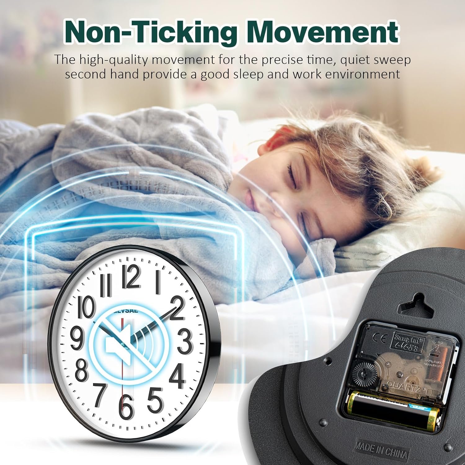 【Ultra-quiet movement】Durability Wall clock is equipped with an ultra-quiet movement, allowing us to sleep better at night. Don’t worry about the ticking sound of the clock anymore.