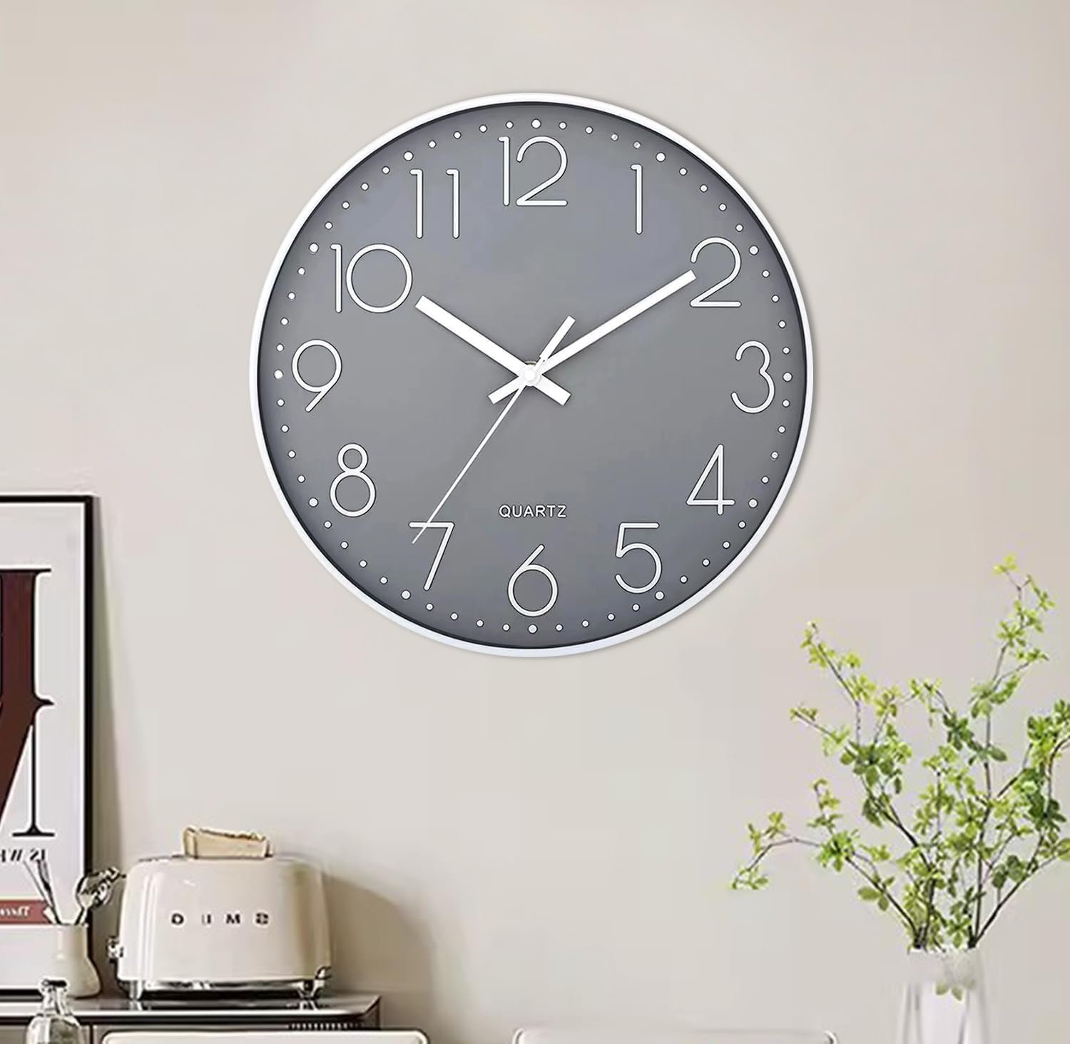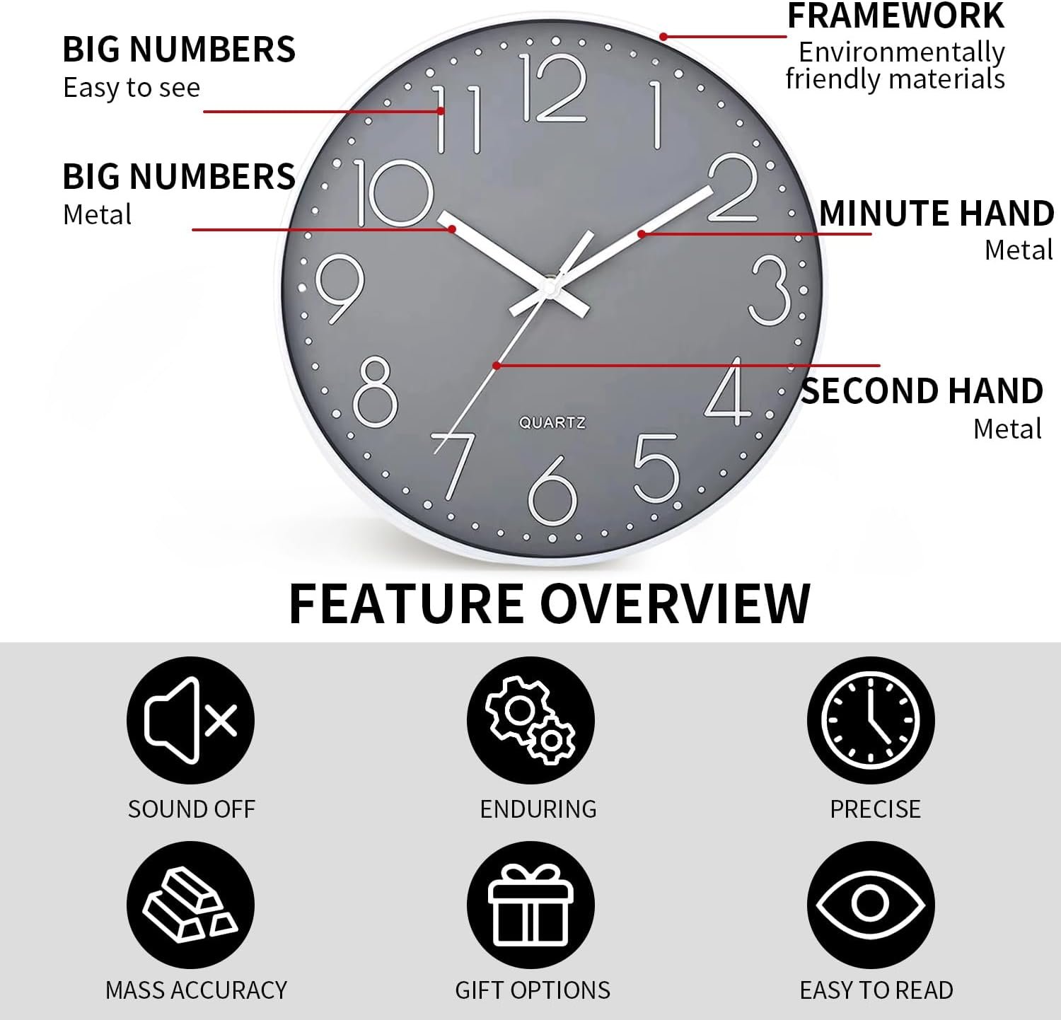 🕘High Quality Wall Clock – The newest grey wall clock frame environmental engineering plastic, non-toxic and safer; metal pointer is used and copper sleeve is added for reinforcement, which is more closely combined with the movement.