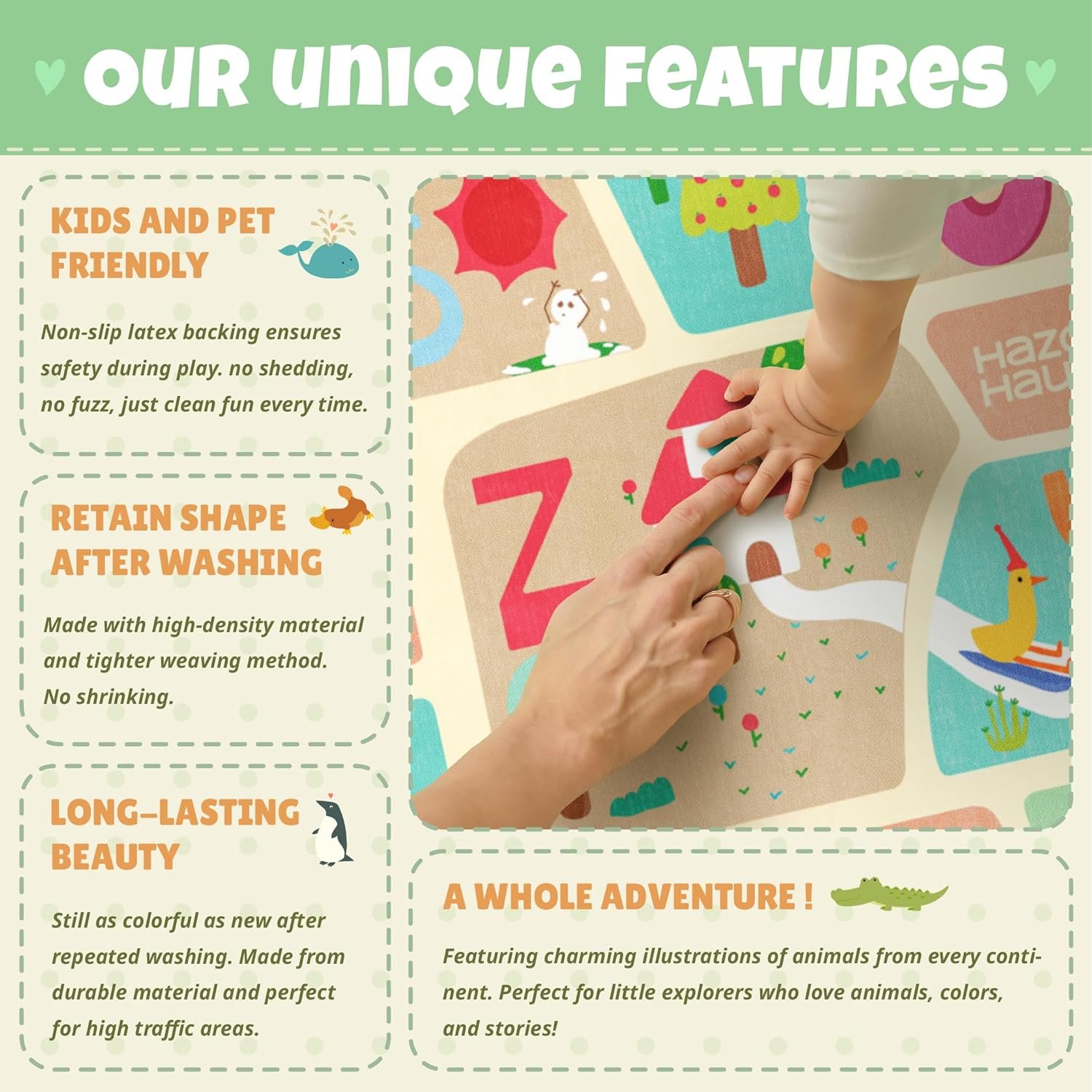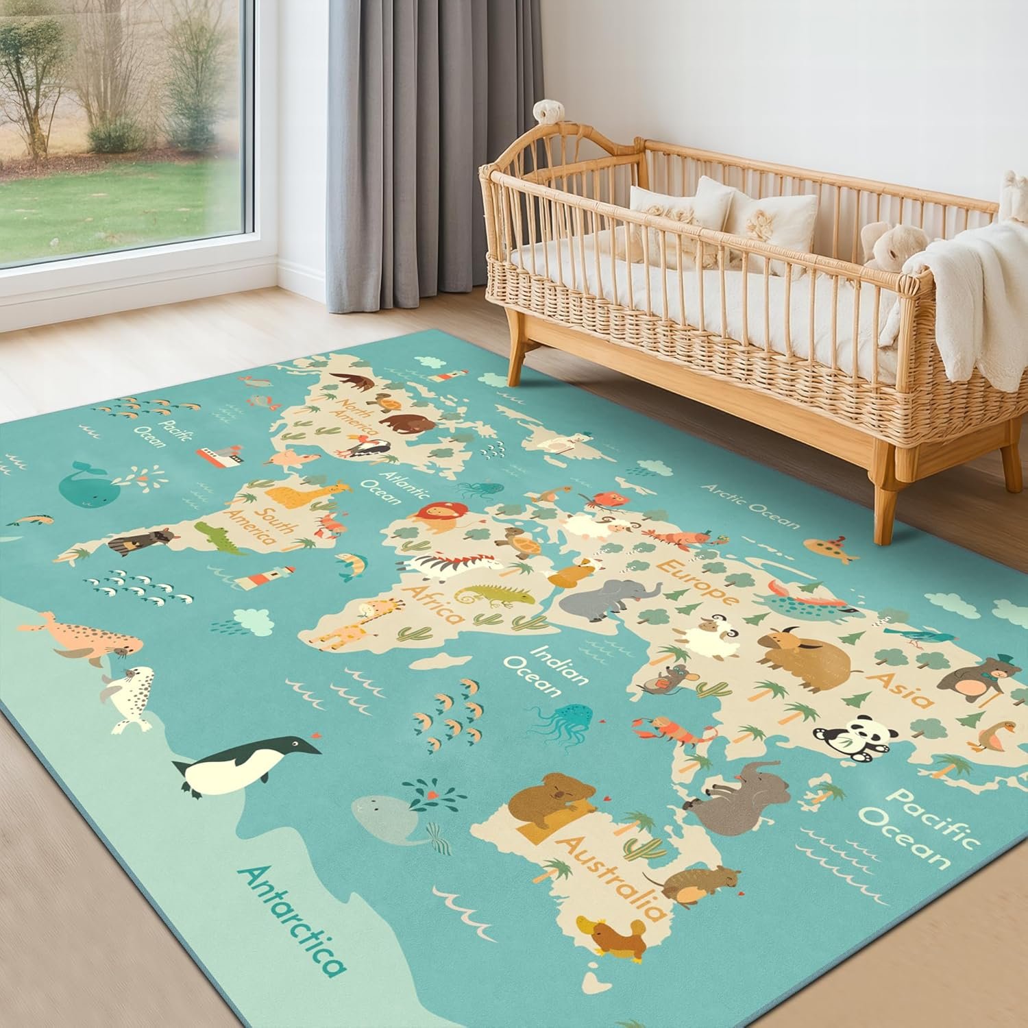 Real Function: Perfect for little explorers who love animals, colors, and stories! This educational rug helps kids identify wildlife and regions while encouraging imaginative play. Ideal for storytime, nap time, or interactive lessons