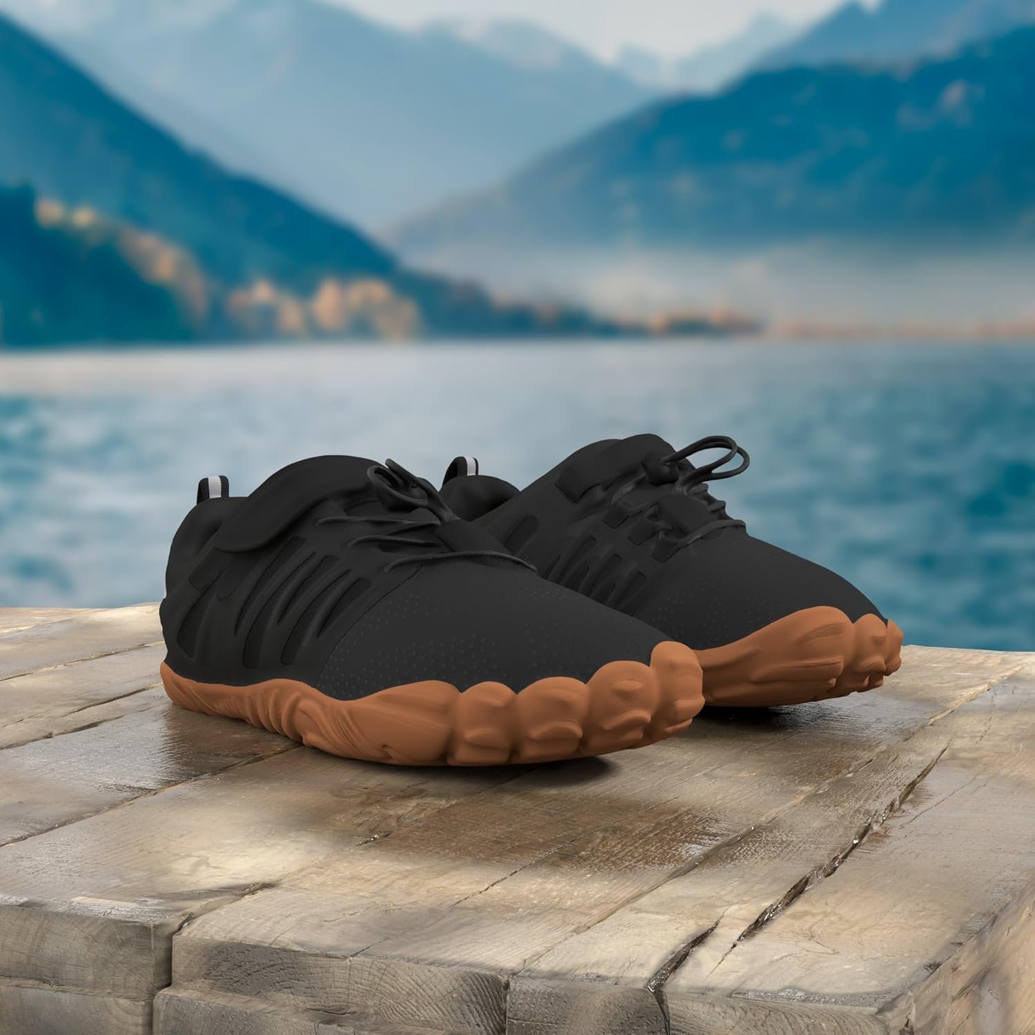 Customers find these running shoes comfortable, with a wide toe box and perfect fit, and appreciate their lightweight design that feels like barefoot walking. They are suitable for various activities including trail running, biking, and casual wear, and customers consider them good value for money, noting they offer better quality at half the price. While some customers report the shoes hold up well, others mention durability issues with the ankle strap breaking.